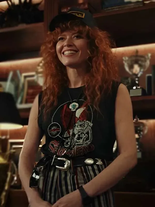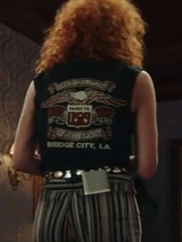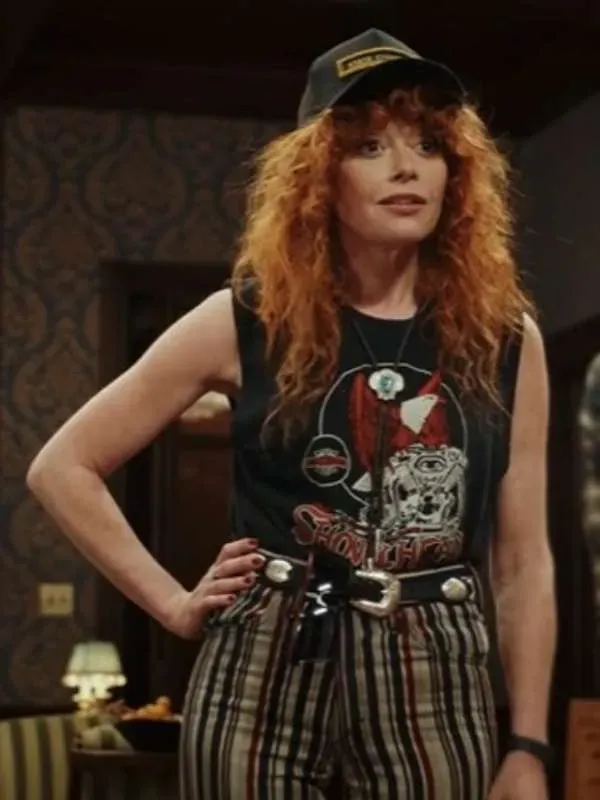 The comfortable, soft fleece fabric makes up the Natasha Lyonne Black Tank Top from Poker Face Season 2. With a rounded collar for a classic, easy look, and no sleeves, it feels airy and loose. Whether you want to imitate Charlie’s daring and carefree style or are just dressing comfortably, this tank top is a great choice. This piece is perfect for fans who appreciate Natasha Lyonne’s personality and sense of style because it is simple and stylish.