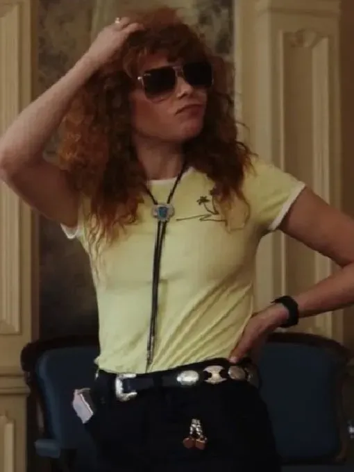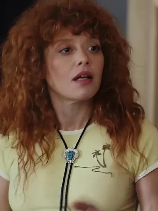 Natasha Lyonne brings her signature wit and fearless charm to her role in Poker Face Season 2. She portrays a cunning and intelligent character who moves confidently and with keen intuition through every situation. Her performance is lively and full of personality; it alternates between being serious and funny. In one particularly striking scene, she wears a bright Natasha Lyonne Yellow Shirt, which perfectly reflects her bold and vivacious personality. Her character’s grounded personality and unwavering spirit are captured by the bright color and simple design, making it a unique ensemble in the series.