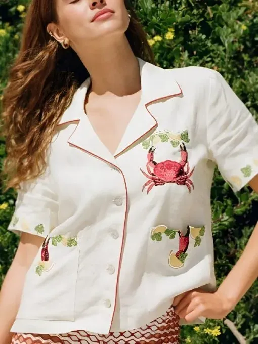 Bring a formidable and quirky vibe in your wardrobe with the Poker Face S2 Natasha Lyonne Crab Shirt, inspired with the aid of Natasha Lyonnes particular style in Poker Face Season 2. As worn through the person Charlie Cale within the hit thriller collection, this shirt stands proud way to its pleasing crab print and effortlessly cool appearance. With a clean white base and playful purple crab design, it’s the appropriate choice for anyone who enjoys fashion with a fun, exclusive twist. Whether you’re keen on the display or simply love standout portions, this shirt brings electricity and man or woman to any informal outfit.