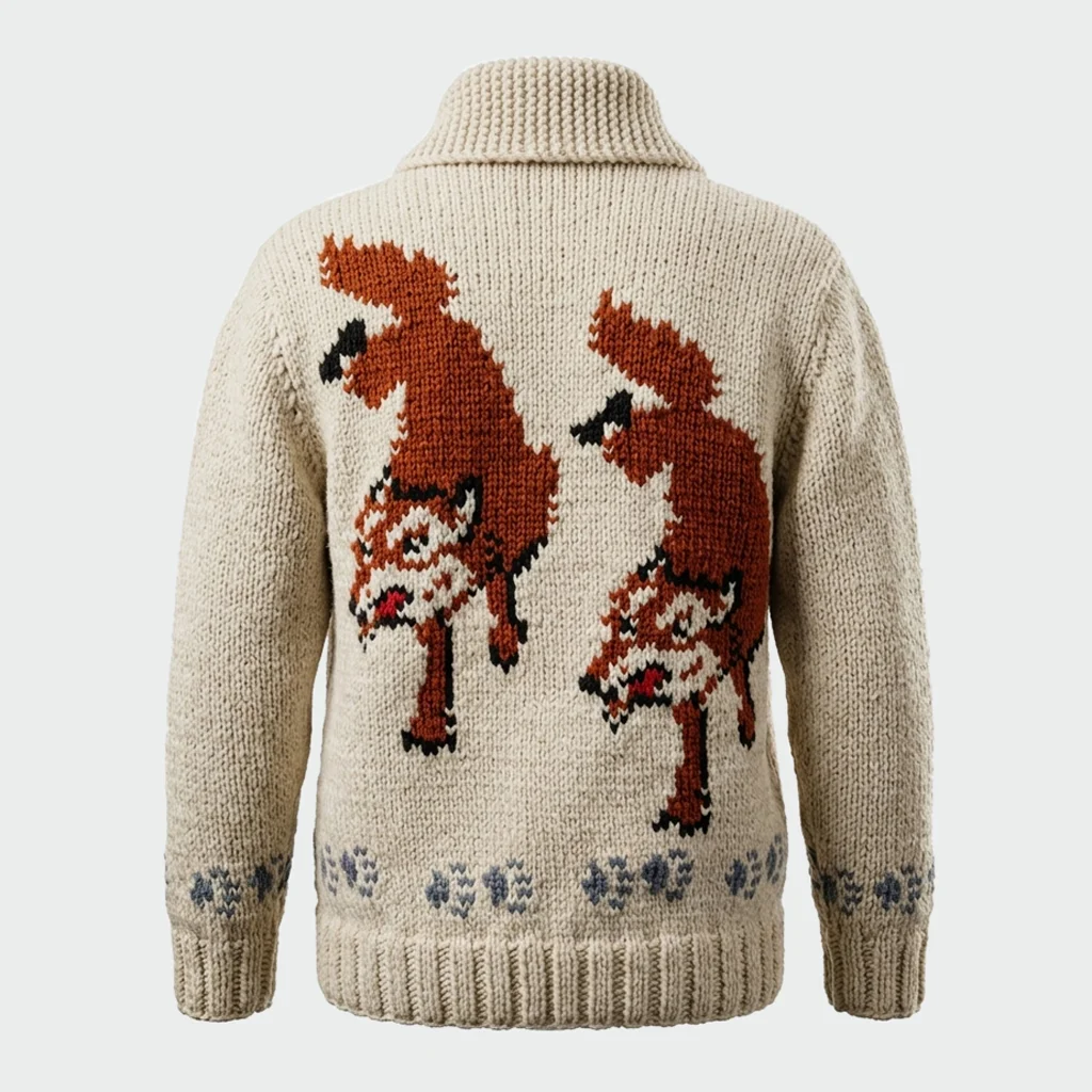 Both comfort and style were considered in the design of this knitted cardigan. It keeps you warm on chilly days without being heavy because it is made of soft knitted material. The full sleeves offer additional warmth and coverage, and the turn-down collar adds a fashionable and tidy touch. Ryan Gosling Wolf Cardigan is also simple to put on and take off thanks to its smooth zipper closure. Its off-white hue gives it a crisp, modern appearance that goes well with a variety of ensembles, including basic pants and casual jeans. This cardigan is ideal for casual get-togethers, walks outside, and everyday wear. It is a must-have addition to your winter wardrobe because it strikes a balance between comfort and contemporary style.