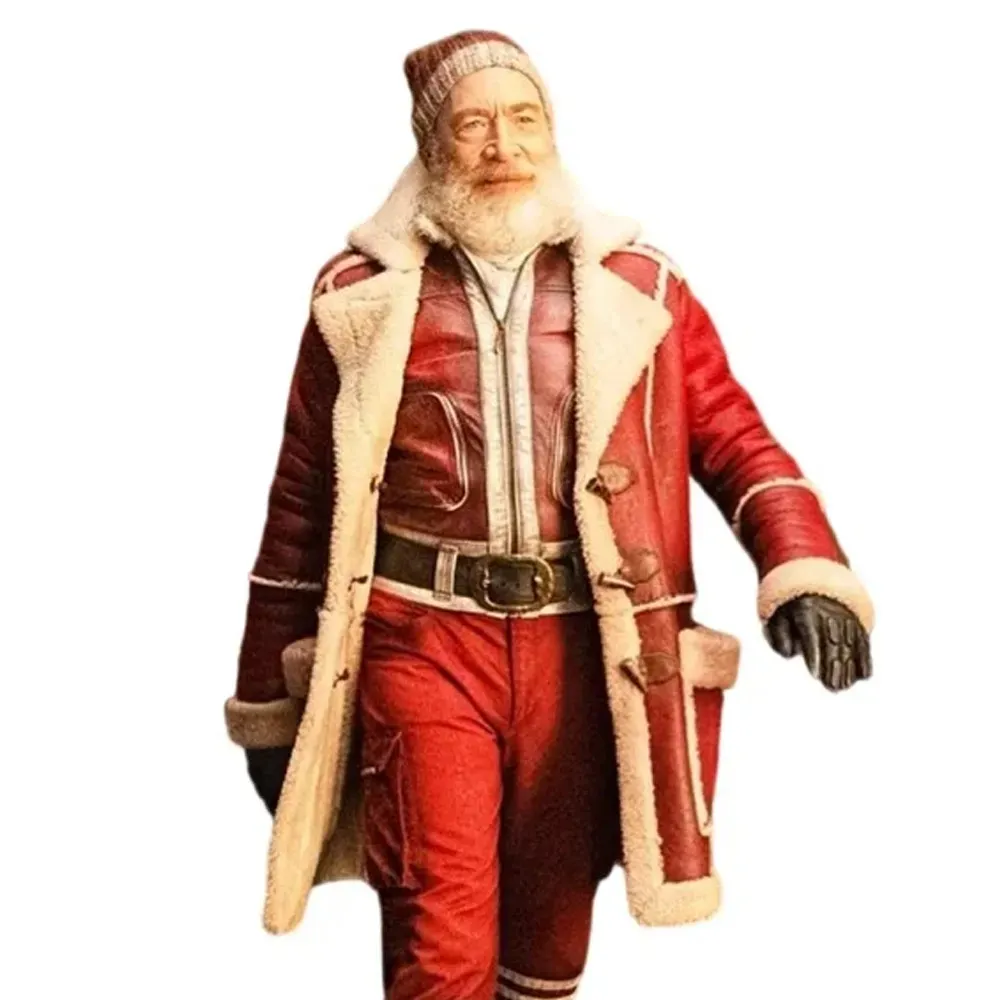 J.K. Simmons Red One 2024 Nick Santa Claus Shearling Red Leather Coat
