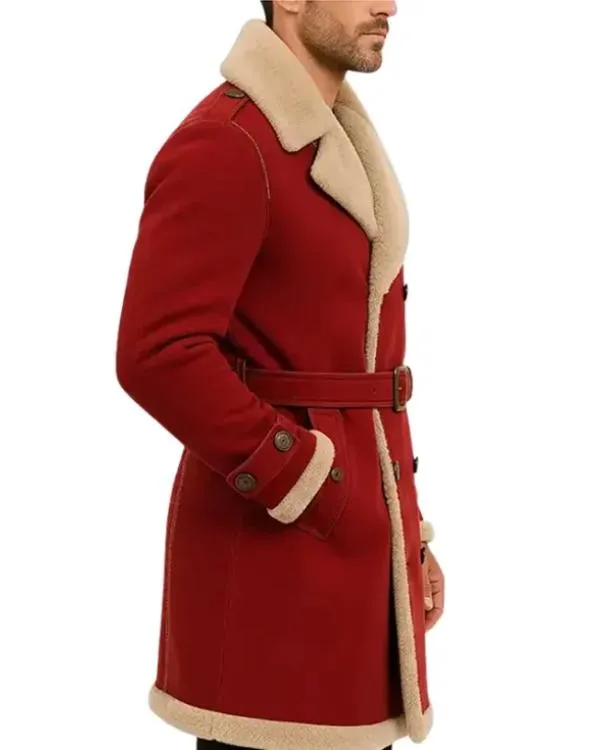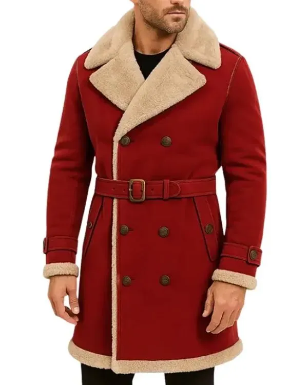 Embrace the festive season with both warmth and sophistication in the Red Shearling Belted Trench Coat for Christmas a classic garment designed to enhance your holiday experiences. Suitable for both men and women, this captures the essence of Christmas through its luxurious fabric, vibrant hue, and comfortable design. Whether you are attending a family gathering, wandering through a winter market, or taking holiday photographs, this coat instantly elevates your appearance with a touch of elegance and festive allure.