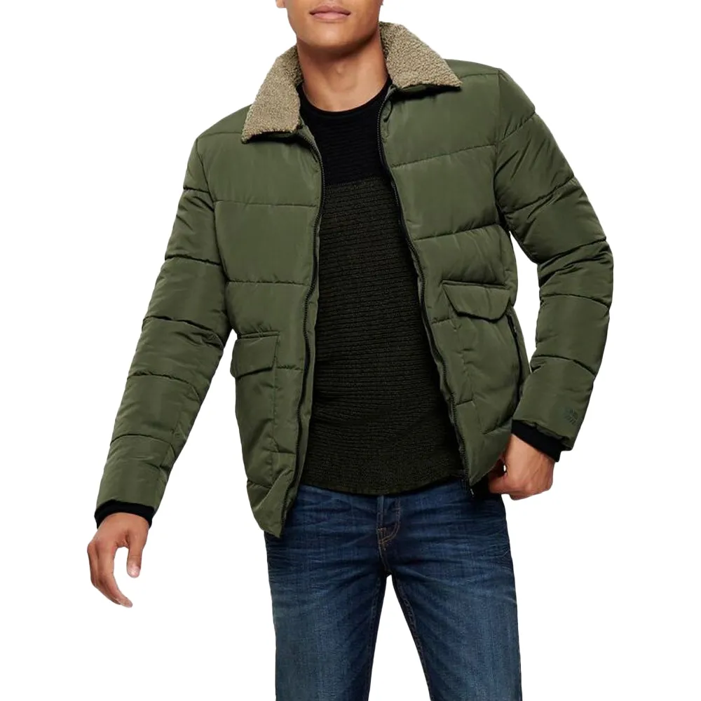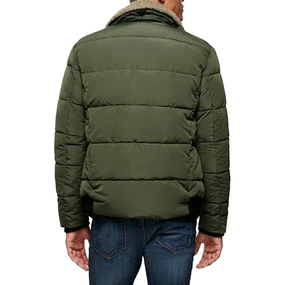 The shearling collar gives the jacket a rugged yet fashionable look.