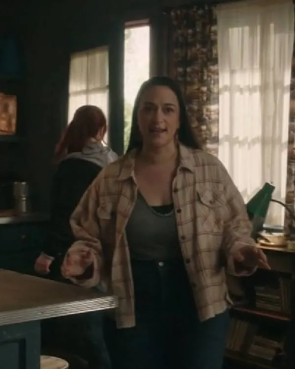 Sara Tomko’s character in Resident Alien is calm, thoughtful, and deeply connected to nature and tradition. Her outfits are ageless and functional, reflecting her quiet strength and simplicity. Her plaid clothing is a fantastic suit for her personality. In addition to being fashionable and timeless, it exudes coziness and warmth. This jacket is the type that goes well with informal get-togethers and outdoor excursions. It complements Sara’s grounded and compassionate personality and is ideal for someone who enjoys both functionality and a soft, organic appearance.
