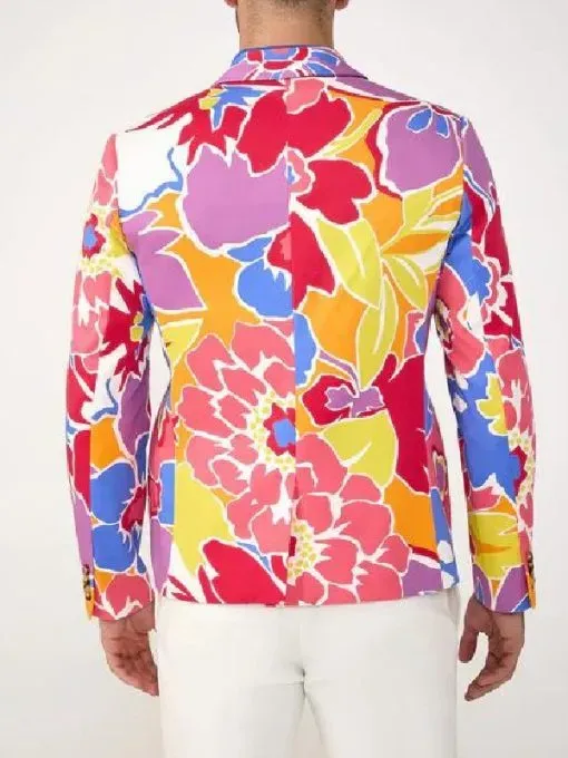 The RuPaul Charles Multicolor Floral Blazer is composed of high-quality suit fabric and features a soft viscose lining for all-day comfort. The button-style front closure and lapel collar create a sleek, classic silhouette with a modern twist. The button cuffs and full-length sleeves of this blazer blend fashion and function. The multicolored floral pattern adds a striking, expressive touch, making it a unique piece for any performance or event. It is ideal for keeping essentials close at hand because it features two side waist pockets and two inner pockets for convenience. Whether you are dressing for a formal occasion or making a stylish entrance, this blazer lets you flaunt your uniqueness at every opportunity.