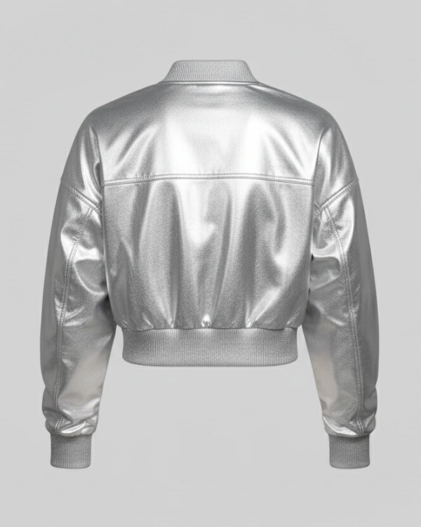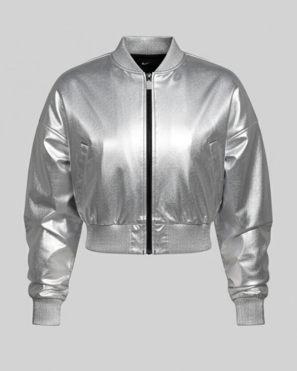 The cropped bomber style introduces a modern, fashion-forward twist to traditional sportswear ideal for pairing with high-waisted jeans, skirts, or athletic leggings. Whether you’re embodying dynamic court energy or expressing your own bold style, this silver crop jacket serves as a declaration of confidence, strength, and modern fashion.