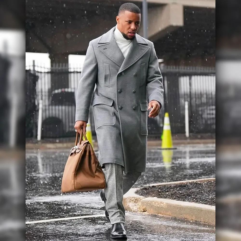 Saquon Barkley Playoff Coat is the combination of elegance and comfort that will keep you stylish and warm on winter days. It is inspired by an athletic figure, which makes it ideal for casual outings or formal events. Grey color on the coat makes it easy to combine it with a variety of clothes, giving it a classic finish. Wool fabric enables the coat to endure long years of wear, whereas the soft inner lining provides comfort. With a stand up collar and fitted shape of the coat, Saquon Barkley fans can now show off their sense of fashion without much hassle. For a relaxed touch, you can throw it over a pair of jeans, or if you’re in the mood for something more formal, wear it with trousers.