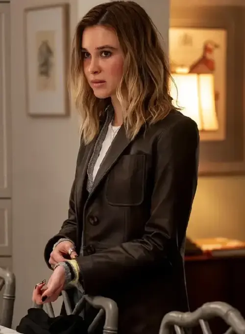 Tatum Prescott Film Scream 2026 Isabel May Brown Leather Coat