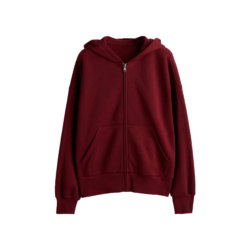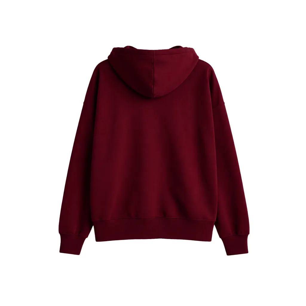 This hoodie offers warmth and comfort all day long because it is made of soft, premium fleece. In addition to providing additional coverage, the hooded collar has a laid-back street-style vibe. It is easy to wear and layer thanks to its smooth front zipper closure. A tight and cozy fit is guaranteed by full-length sleeves with rib-knit hem and cuffs. The front kangaroo pockets provide room to store small necessities or keep hands warm. The deep shade of maroon adds a fashionable touch and looks great with joggers, jeans, or casual pants. This hoodie is a great option for daily wear because it combines comfort, durability, and a contemporary style into one adaptable outerwear item that goes well with any casual wardrobe.