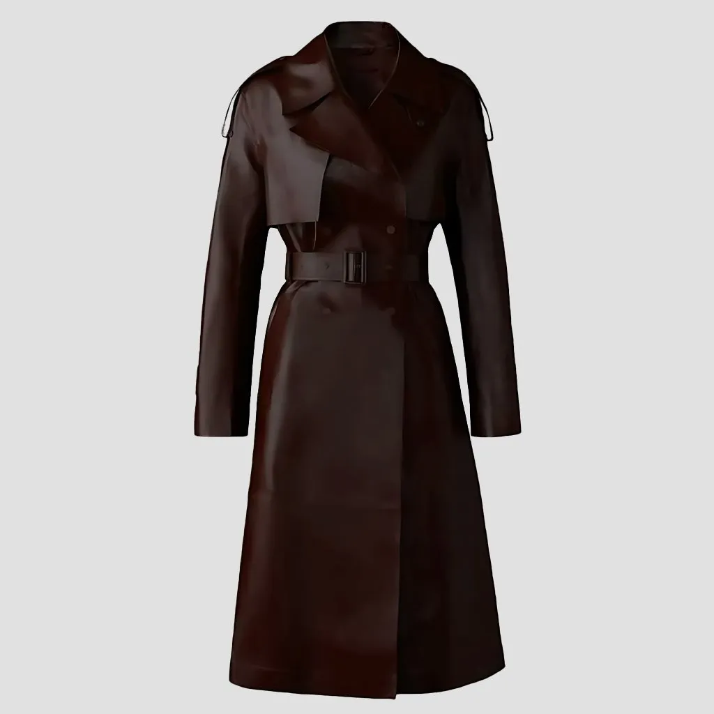 The belted closure cinches the waist perfectly, giving a sleek and feminine silhouette.