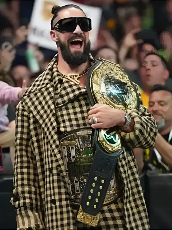Seth Rollins Monday Night RAW 2025 Checkered Trench Coat
