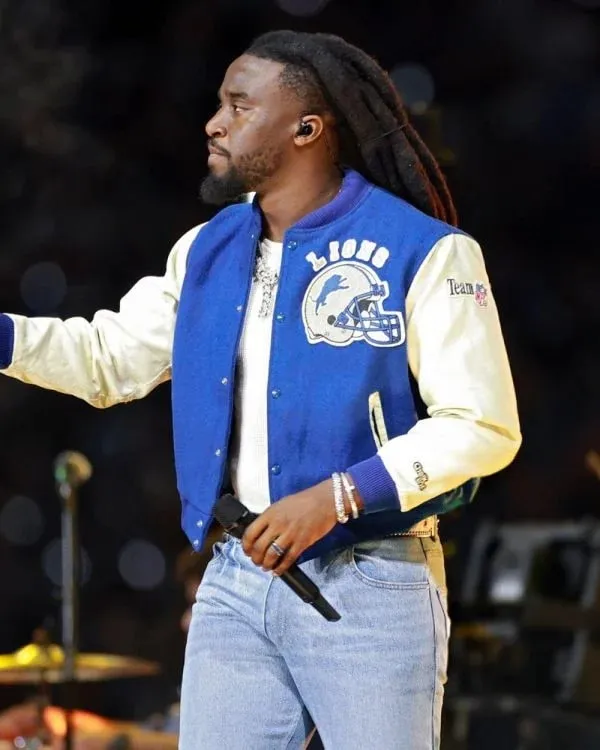 As he’s known to fanatics, Collins Obinna Chibueze, or Shaboozey, has fast turn out to be a first rate pressure within the track scene. With his hit tracks like A Bar Song and dynamic degree energy, He commanded attention at Ford Field at some stage in the Detroit Lions’ Thanksgiving recreation in opposition to the Chicago Bears. He took the degree in his iconic Detroit Lions jacket, kicking off the halftime show with the soulful Last of My Kind earlier than diving into the excessive-electricity hit, A Bar Song. His overall performance matched the strength of the packed stadium, with the crowd absolutely at the back of him. The Shaboozey Detroit Lions Jacket vibrant blue and white colors perfectly complemented the price formidable blue and white tones of the jacket pondered the crowd’s excessive strength. The jacket’s bold blue and white colors amplified the energetic atmosphere, together with his electric powered stage presence taking center degree.