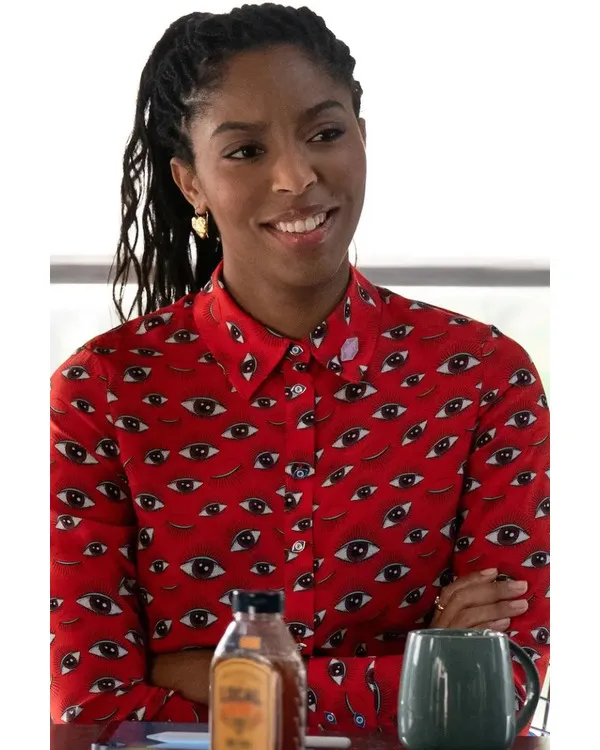 Shrinking S02 Jessica Williams Red Eye Print Top