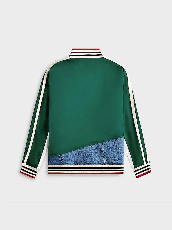 Those who want comfort without sacrificing style are the target market for this jacket. It has a distinctive and contemporary appearance because it is made of denim and soft fleece. The viscose lining on the inside is smooth and kind to the skin. A two-way zip front closure makes it easy to wear and adjust. The long sleeves, cuffs, and rib-knitted collar provide warmth and a tight fit. Shrinking S03 Denim Jacket has two pockets inside and two outside zippered waist pockets, providing ample room for little necessities. The fresh and stylish appearance of the green and blue color combination makes it an excellent choice for everyday wear, travel, and informal get-togethers.