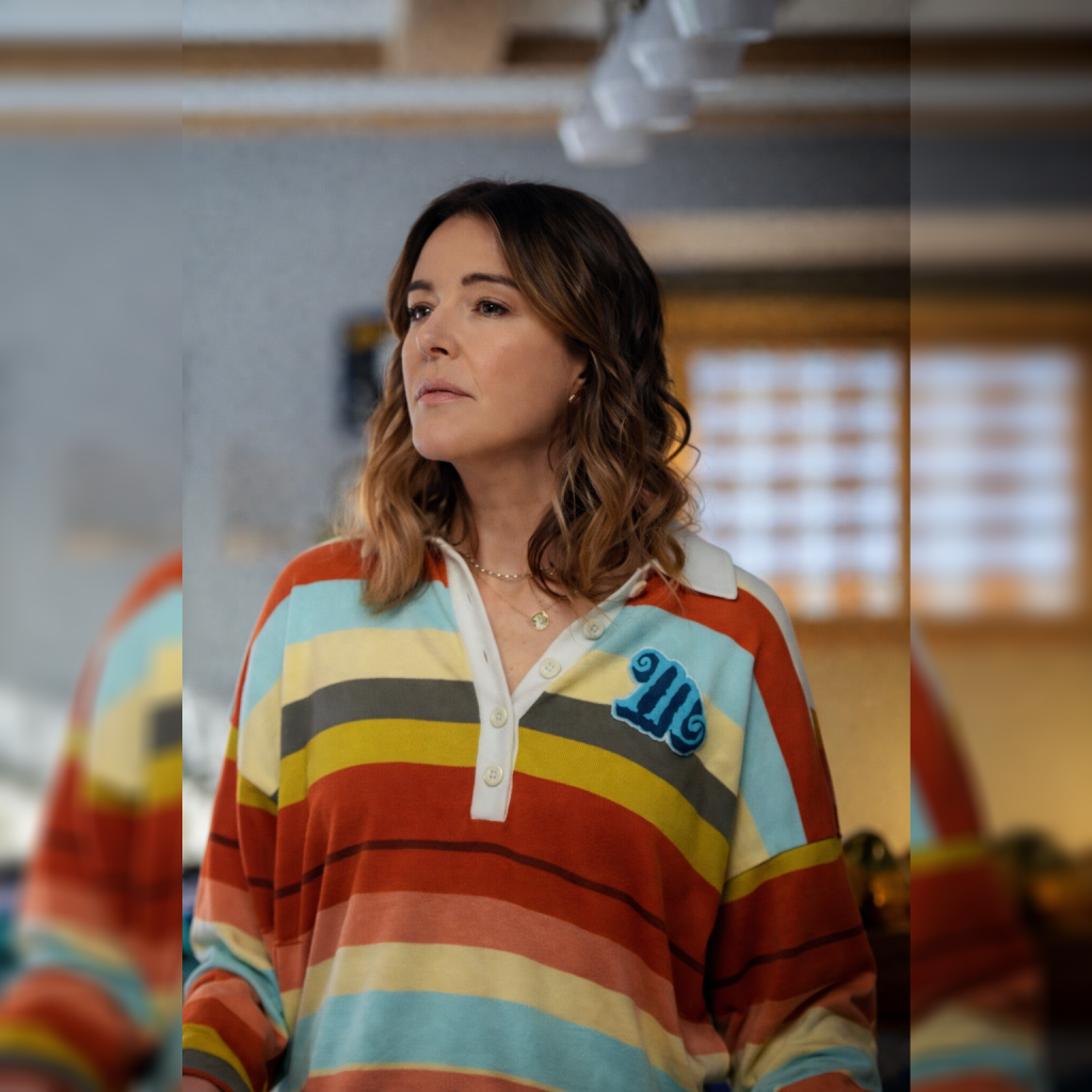This chic item was inspired by a popular on-screen character who is adored for her self-assured demeanor and carefree sense of style. Shrinking Season 3 Christa Miller Rainbow Multicolor Striped Shirt. She is a popular among those who appreciate casual yet striking attire since her wardrobe frequently combines dramatic design with comfort. She combines vivid colors with straightforward silhouettes to give everything she wears a natural charm. Because of this impact, she is particularly well-liked by those who wish to incorporate a joyful and contemporary element into their regular outfits. Her wardrobe selections are ideal for people who prefer to stand out subtly and amiably without making a big effort.