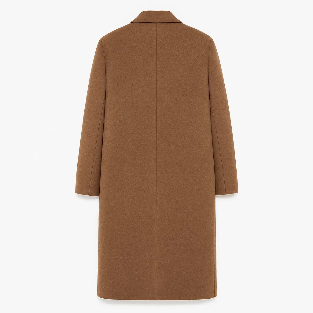 The brown color is rich and elegant. The wool fabric keeps me warm, and the lapel collar adds a stylish touch.
