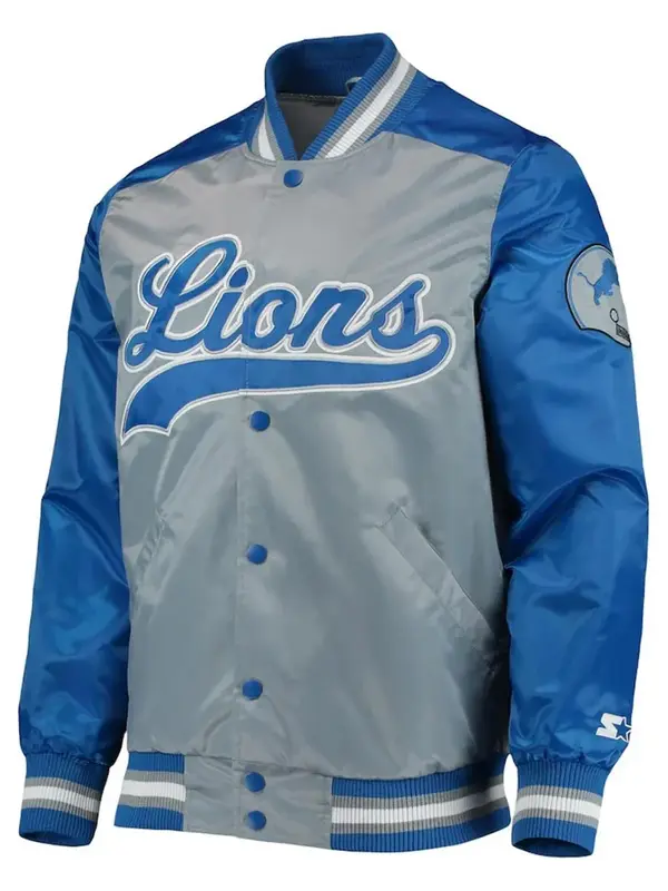 Meticulously crafted Men’s Detroit Lions Starter Blue Stripe Varsity Jacket exudes sophistication with its advanced exceptional satin cloth. The inner lining, tailor-made from soft viscose fabric, promises remaining consolation and warmth. Its captivating details encompass a buttoned closure, a rib-knitted collar, and extended sleeves finished with rib-knitted cuffs. The coat’s functionality is superior via two outer waist wallet and two inner pockets. To assist you to shine brilliantly, it comes in a Blue color. The quality first rate sewing of the Detroit Lions the Tradition II jacket makes it long lasting and appropriate to put on. The jacket is an excellent choice for sports activities enthusiasts.