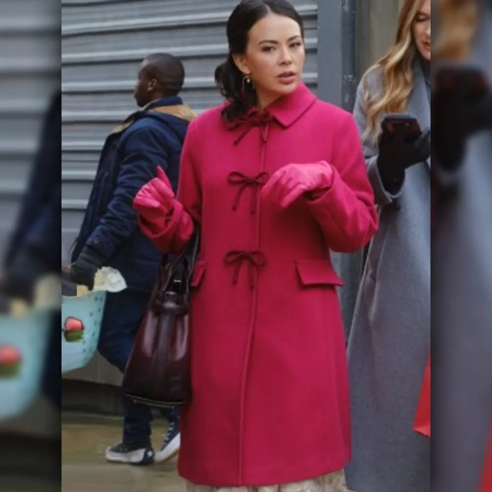 Janel Parrish Sugarplummed 2024 Sugarplum Pink Bow Coat has a signature dual bow detail that is at the back of the attire and also provides to the female enchantment, so it gives a stylistic improve to the outfit even as on the identical time maintaining a traditional bowtie look. Furthermore, the outwear is double breast with a notched collar and has tailor-made facet seams, which makes it a fulfilling in shape for the proprietor. The bow is elegant however can obtain its mission of bringing out the structure of a garment. Dress it up over a robe or dress it down over a shirt, the red bow outfit eludes a experience of class this is perfect for the iciness season. Snap it now!