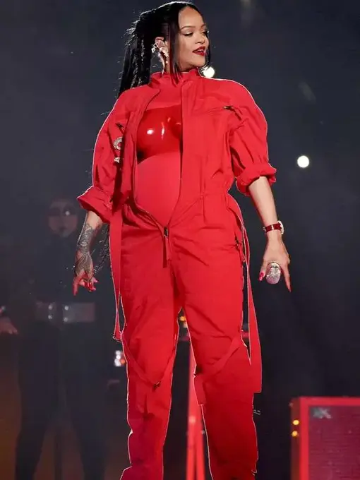 Singer Rihanna Super Bowl Halftime 2023 Red Jumpsuit