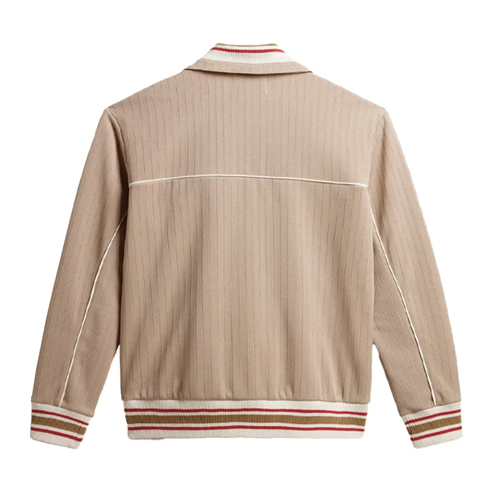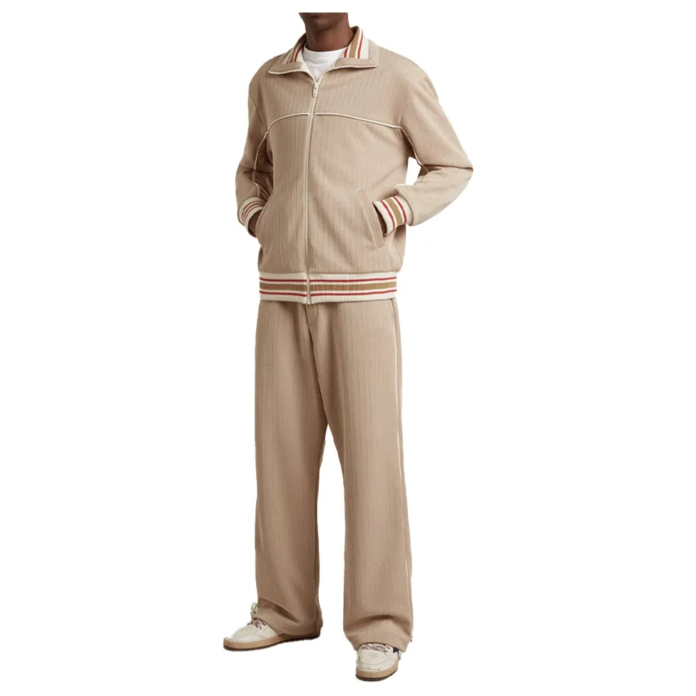 The trousers of the Goose Beige Pine Striped Tracksuit are Earned with two side pockets that suit the sleek shape and enable the keeping of small personal objects. The mustard jacket allows the meeting of the outfit to stand out and furthermore is great for casual, athletic, and even sophisticated streetwear.