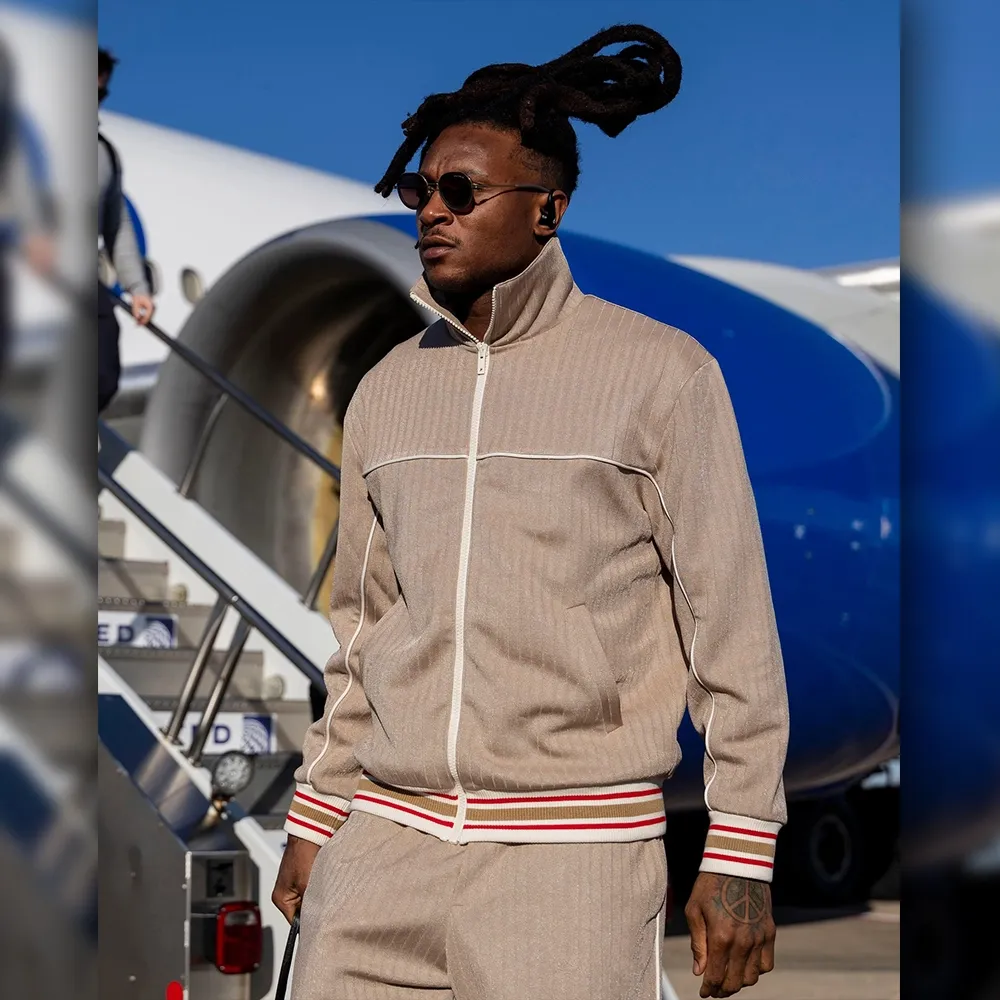 Super Bowl LIX 2025 DeAndre Hopkins Beige Pine Striped Tracksuit