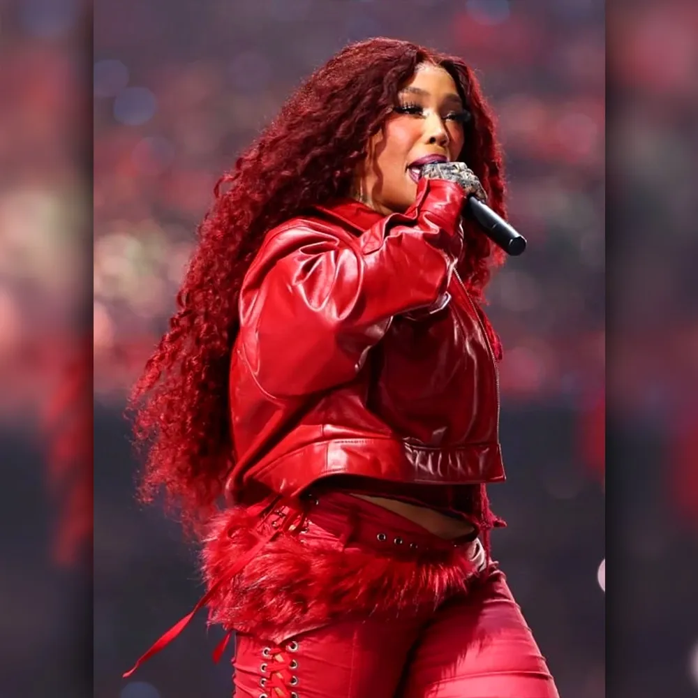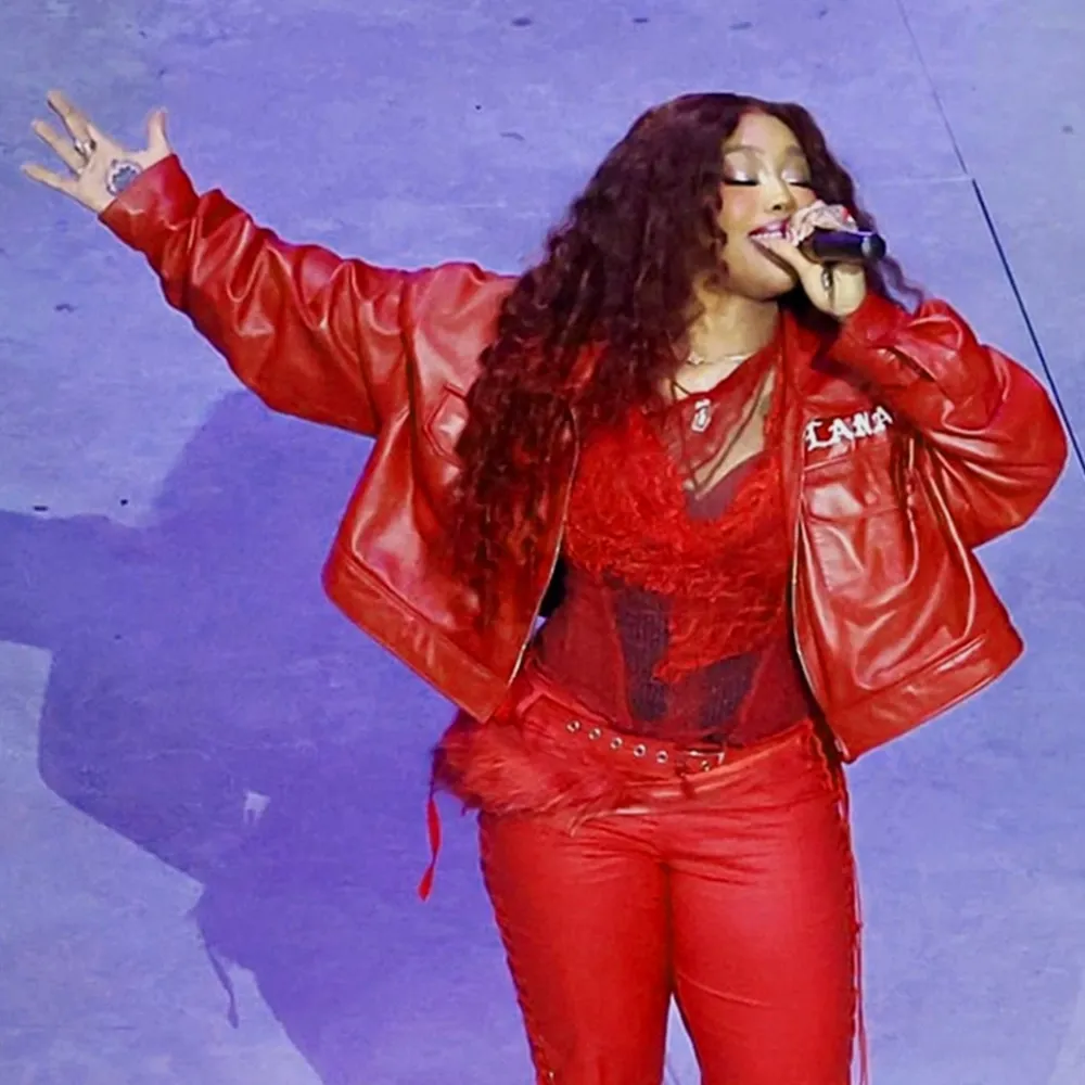 Super Bowl LIX 2025 Halftime Performance SZA Red Leather Jacket