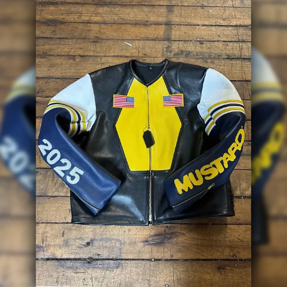 Recreation Mustard Super Bowl Halftime Show Vanson Star Jacket is crafted using high quality real leather which enhances its durability and gives it a premium feel. The soft inner lining helps a great deal in wearing the jacket for long hours as it enhances comfort. Zipper closures give a smart and modern look while offering a snug fit. The round neck collar makes it a little more fashionable while seamlessly fusing the old and new design elements. Long sleeves with zipper cuffs give flexibility and encourage movement. Each detail of the jacket pops because of its multicolor accents that give the jacket a striking contrast. From graphic tees, hoodies, and even standard shirts, this jacket guarantees to enhance your appearance. Designed for fashion pioneers who appreciate brave fashion statements. An unrivaled addition to the closet for those who dare to stand out.
