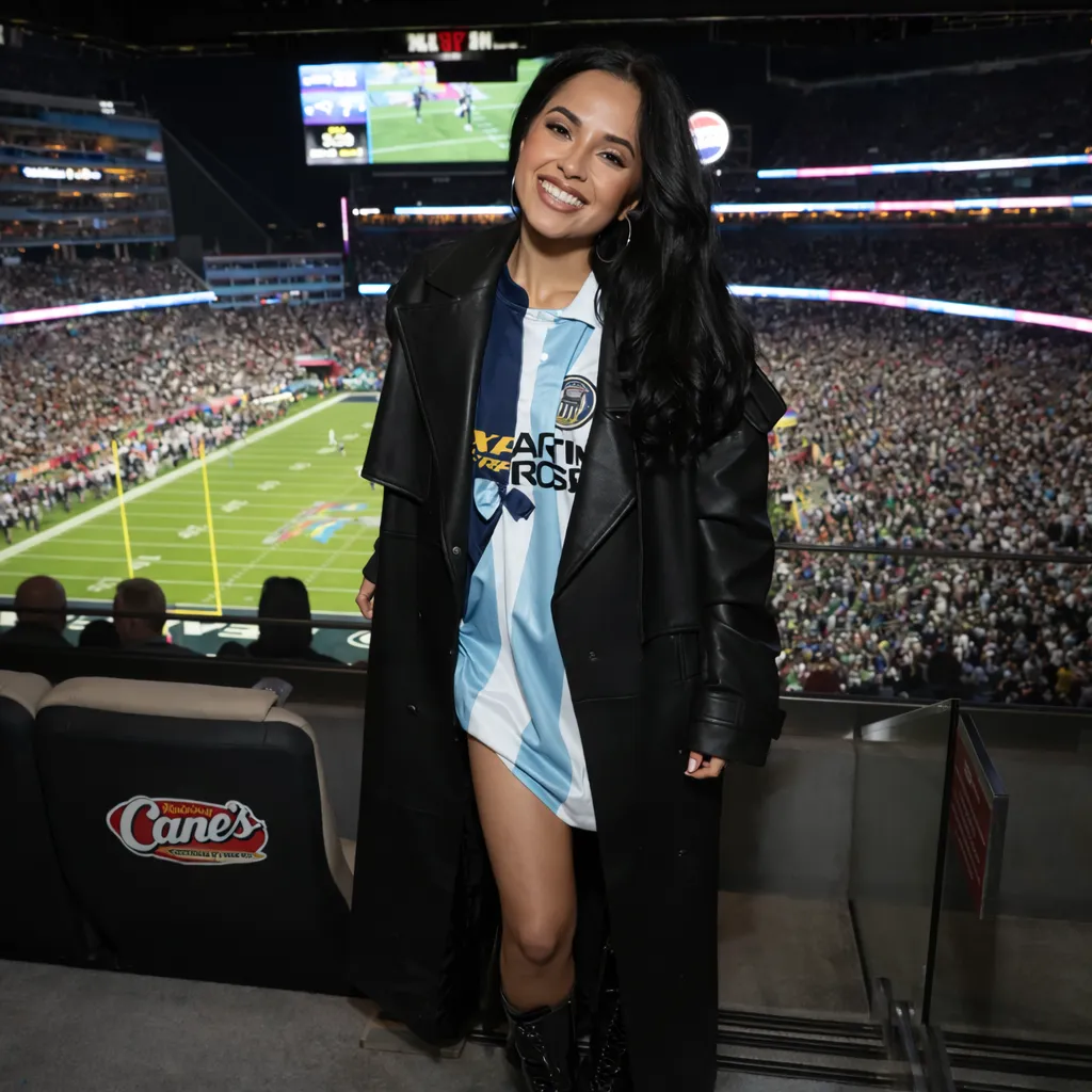 Famous singer, songwriter, and performer Becky G has won over fans all over the world with her upbeat shows and distinctive style. Her ability to combine bold and trendy looks with everyday wearability has earned her a lot of praise. Super Bowl LX Becky G Coat. Many people are inspired to embrace confidence and individuality in their fashion choices by Becky G, who is well-known for making bold style statements on the red carpet and at important events. She is a true fashion icon for young audiences worldwide because of her wardrobe.