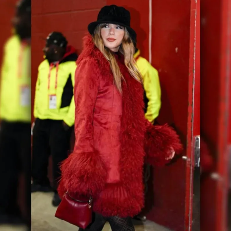 Chiefs vs Texans Game Taylor Swift Red Fur Coat