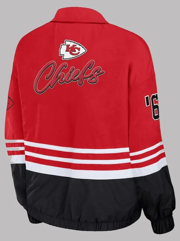 The design of this jacket is a visual masterpiece. It elegantly merges the iconic Chiefs’ red and white color scheme with Taylor Swift’s logo and name, making it a versatile piece that reflects your love for both music and football. Whether you’re headed to a Chiefs game, a Taylor Swift concert, or simply going about your day, this jacket is a fashionable and practical choice.