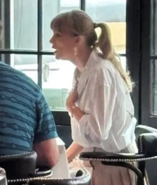 This timeless and gorgeous Taylor Swift Ohio Lunch Date 1989 Seagull Blue Stripe Poplin Shirt was inspired by her iconic style from her 1989 era. She was seen wearing this shirt on a casual lunch date in Ohio, and it perfectly captures her love of basic, retro-inspired apparel with a modern twist. The soft blue stripes and delicate seagull motif pay homage to the 1989 album’s carefree, beachy, and uncluttered aesthetic. Fans who wish to imitate Taylor’s iconic style will love this shirt because it is ideal for casual gatherings, brunches, or layering for a smart-casual look.