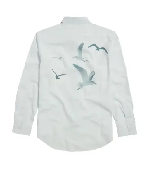 The crisp, breathable feel of this cotton poplin shirt ensures your comfort throughout the day. Its button front closure and shirt-style collar provide a classic and elegant silhouette. The full sleeves’ elegant appearance will work well in both casual and slightly dressy settings. The shirt, which features a seagull design and delicate blue stripes on a clean white background, is straightforward but bursting with personality. Whether you are a Swiftie or just appreciate classic styles that make a statement, this shirt is a stylish and versatile addition to your closet.
