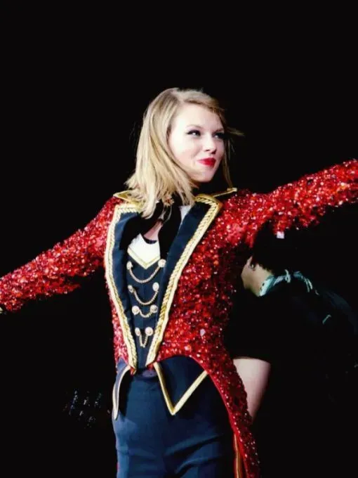 This hanging Taylor Swift Red Tailcoat is the epitome of glitz and opulence, designed with style in thoughts. It has the nice first-rate sequins at the outside and makes you stand out result easily in any mild. Inside constant with smooth viscose, consolation is paramount without deciding on style. The closure highlights snap-tab buttons, taking into consideration easy fastening and a secure fit. The open hem cuffs offer a comfortable yet delicate silhouette, at the same time as the huge lapel collar adds a touch of conventional allure. In a lively coloration of red, this attire is an declaration piece, perfect for including a putting sprinkle of color to any occasion.