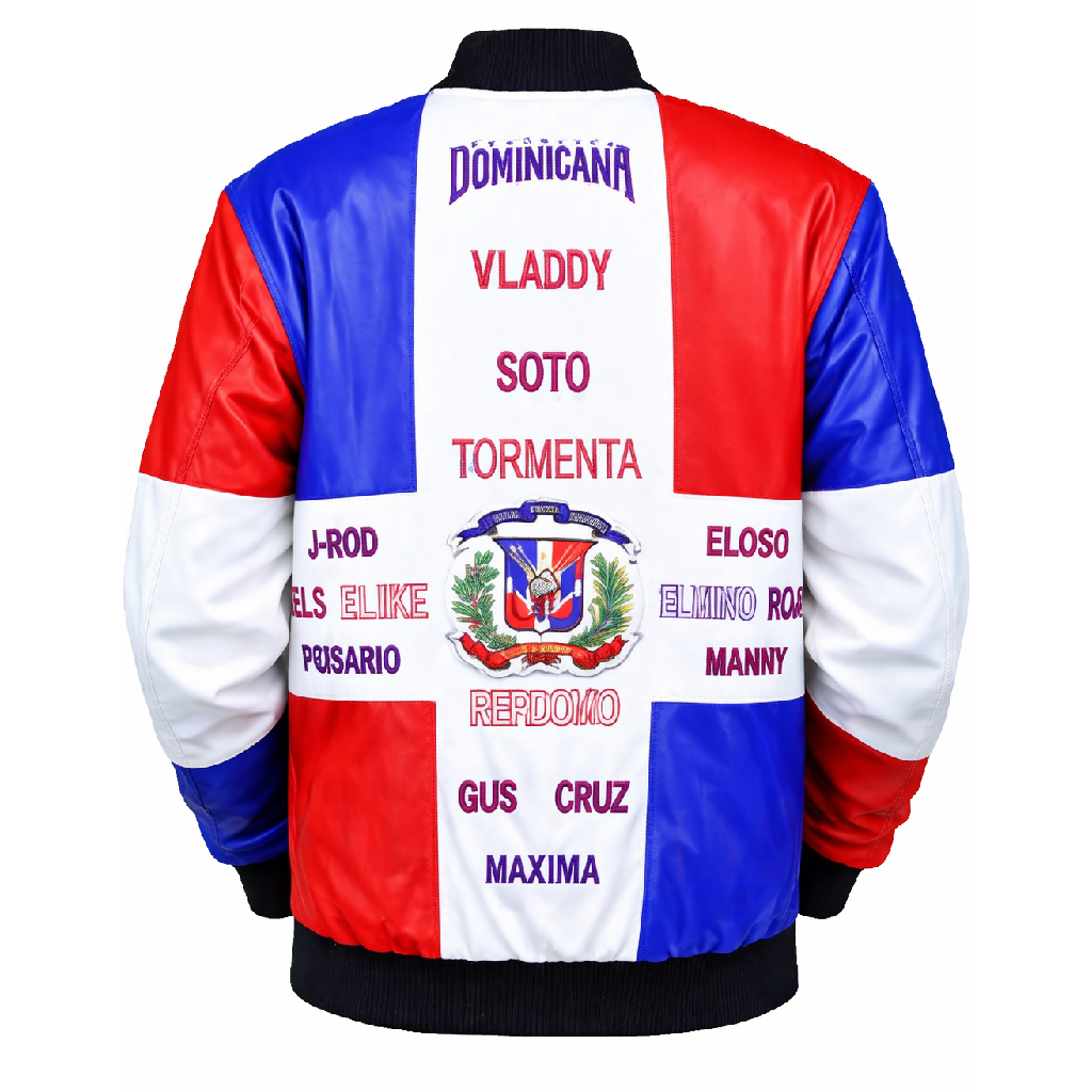 For those who wish to stand out with confidence, the Team Dominican Home Run Jacket is the ideal combination of fashion, toughness, and comfort. It offers a sleek finish and long-lasting wear because it is made of premium real or faux leather. The front zipper closure adds a contemporary, useful touch for daily wear, and the rib-knitted collar, cuffs, and hemline guarantee a snug and comfortable fit.