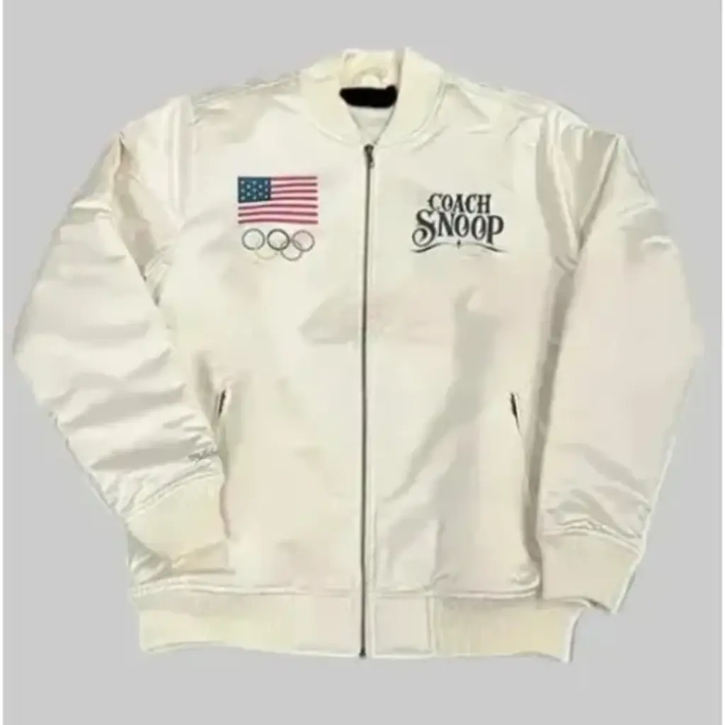 Team USA 2026 Snoop Dogg White Bomber Satin Jacket