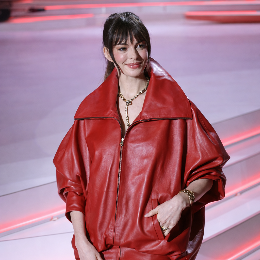 The Devil Wears Prada 2 Seoul premiere Anne Hathaway Red Leather Jacket
