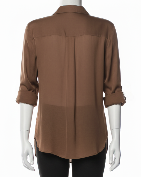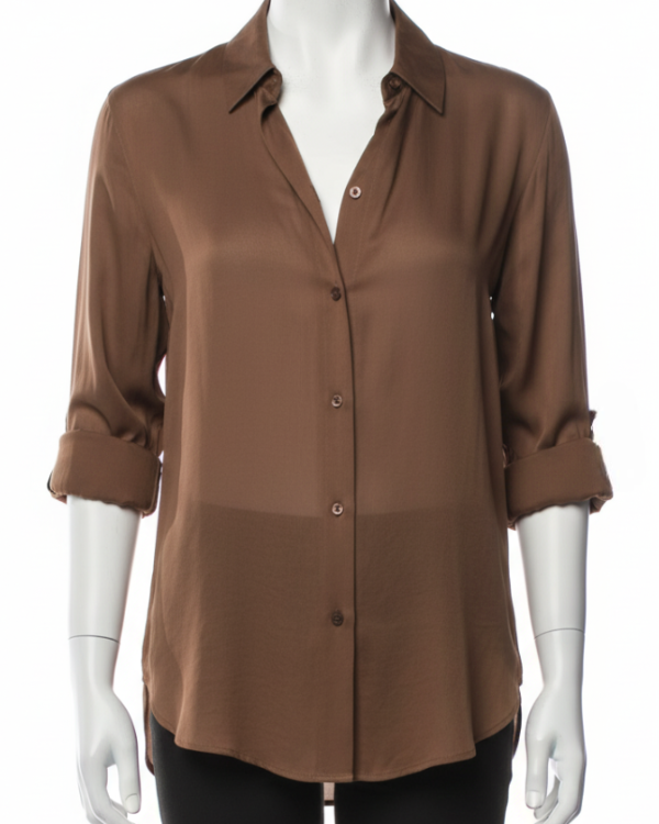 Crafted from durable polyester, offering a comfortable fit throughout the day. The shirt’s classic brown shade adds a sophisticated touch. Front button closure makes it easy to wear and remove smoothly.