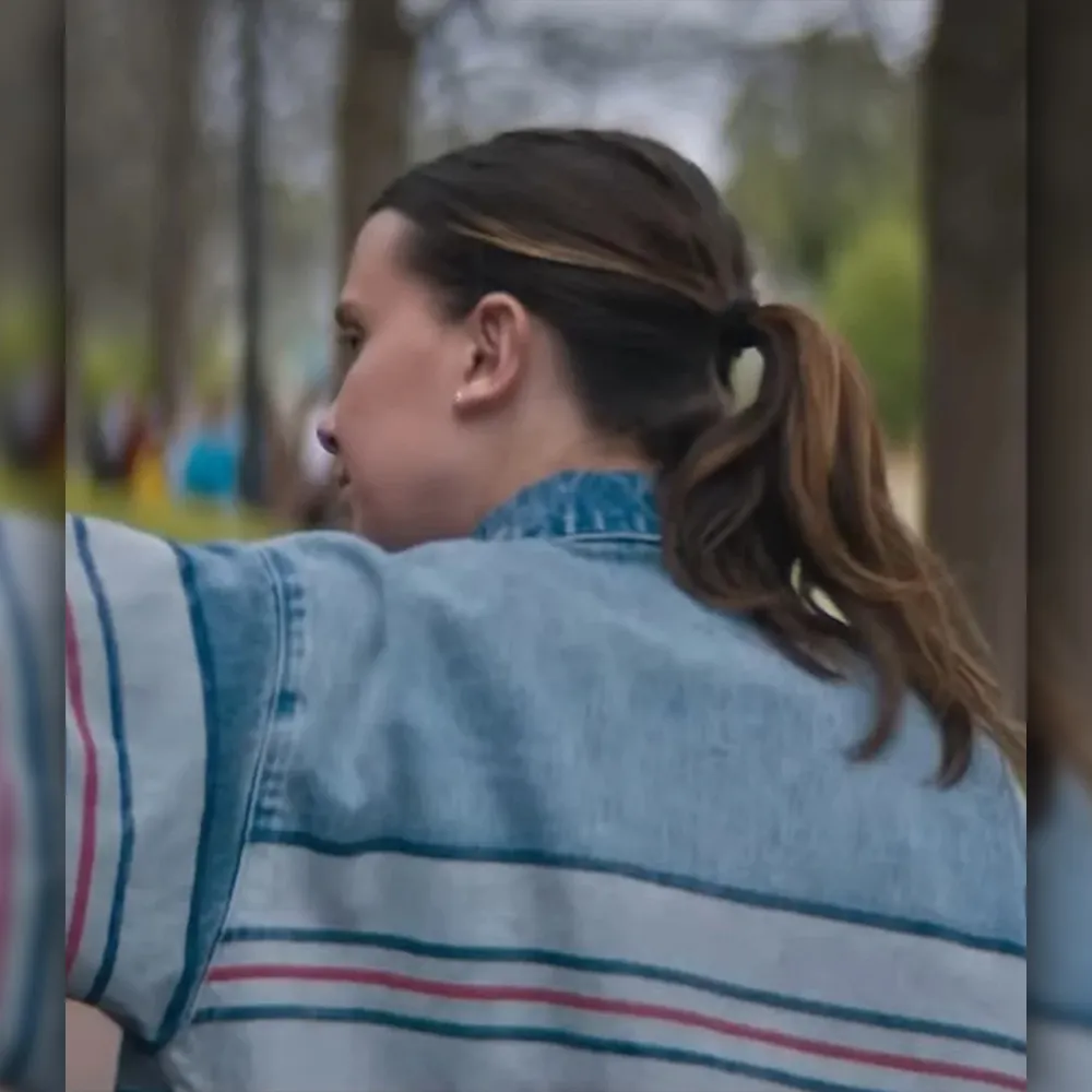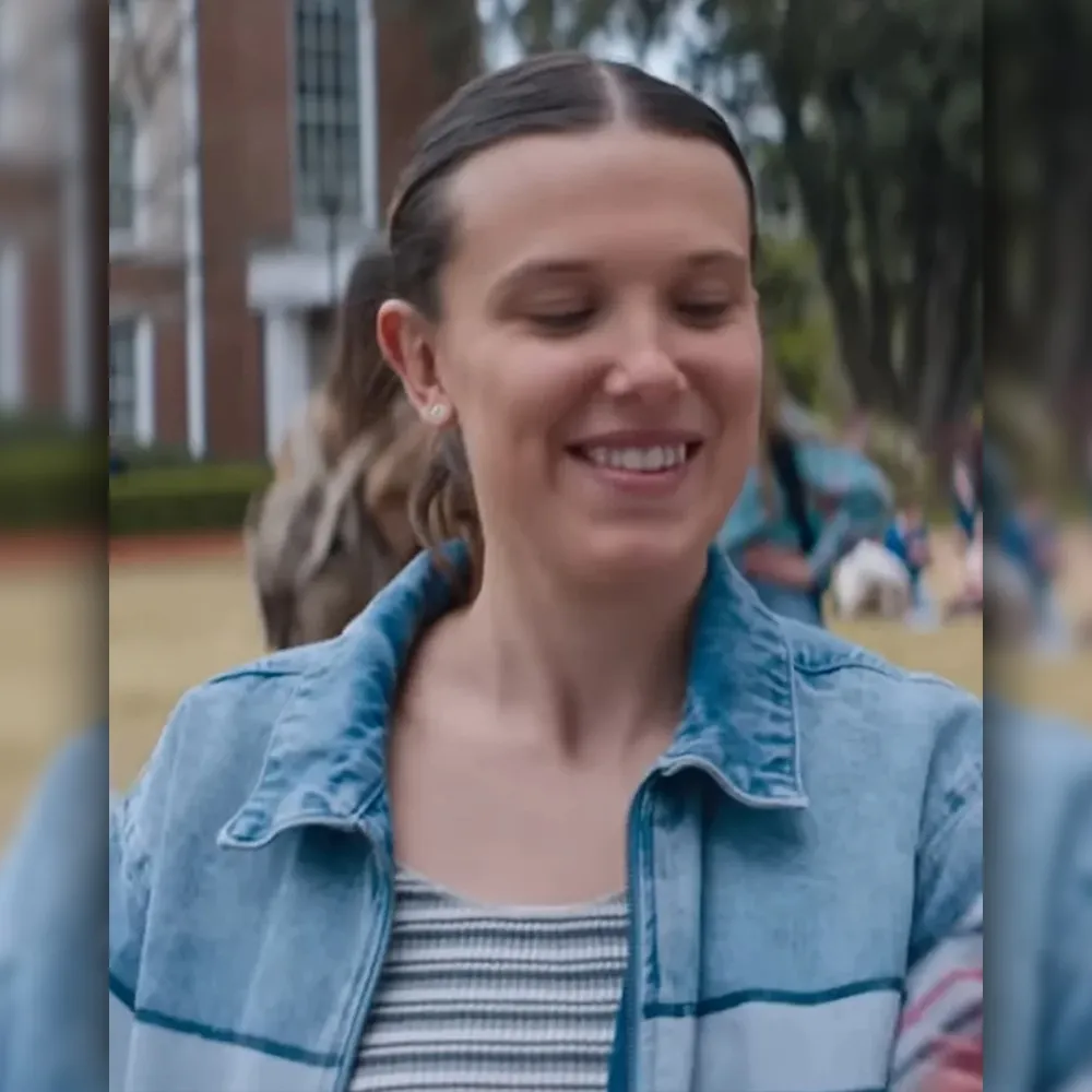 Millie Bobby Brown The Electric State Michelle Stripe Denim Jacket
