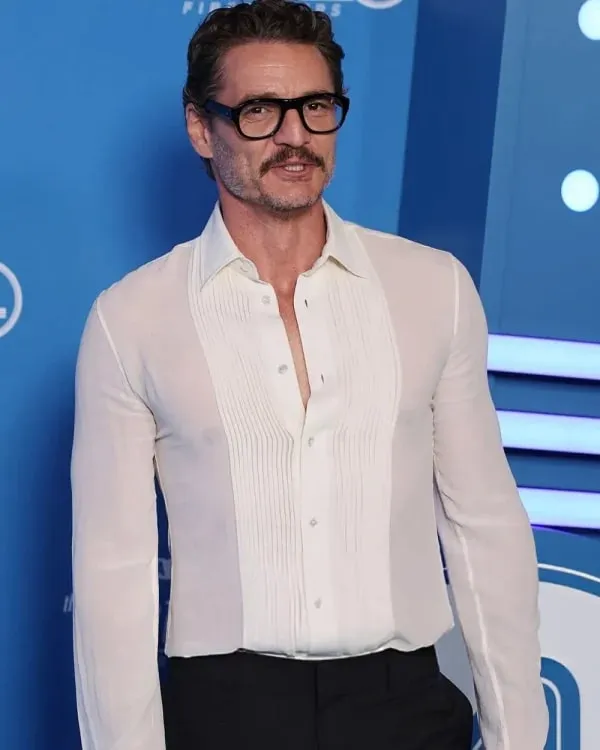 This shirt, which is made of cotton, is lightweight and breathable, providing all-day comfort without compromising structure. Its adaptability is increased by its white hue, which makes it a basic item for both formal and informal settings. This shirt instantly improves your appearance, whether you are wearing it under a blazer or heading to a summer event. Its long sleeves with buttoned cuffs, full button closure, and traditional shirt-style collar create a sophisticated silhouette that looks good in any situation. In keeping with Pedro Pascal’s signature style, the fit is both elegant and comfortable. It is the type of shirt that looks equally comfortable at a dinner party or creative work environment as it does on the red carpet.