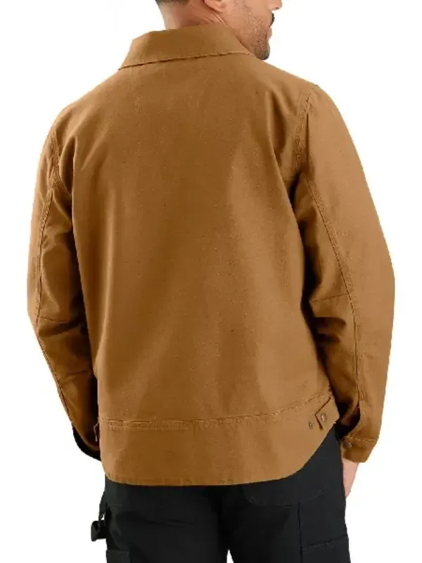The Tim Jamieson The Institute S01 Ben Barnes Brown Cotton Jacket is made of cotton and is both comfortable and durable. The soft viscose lining inside gives it a cozy feel that makes it suitable for everyday wear. It looks put together but casual thanks to its classic shirt collar and simple zippered front fastening. The full-length sleeves’ button-style cuffs enable a personalized fit. With its four outer pockets and two inner pockets, this jacket is both stylish and functional, providing you with lots of storage space. Its rich brown color adds to its classic and rugged appeal, making it a great addition to any wardrobe.