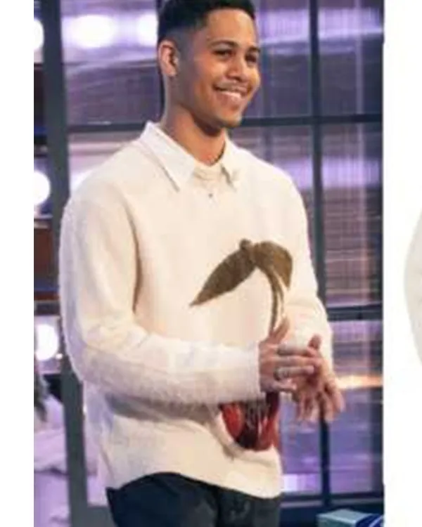 The Kelly Clarkson Show 2024 Rhenzy Feliz Cherry Mohair White Sweater