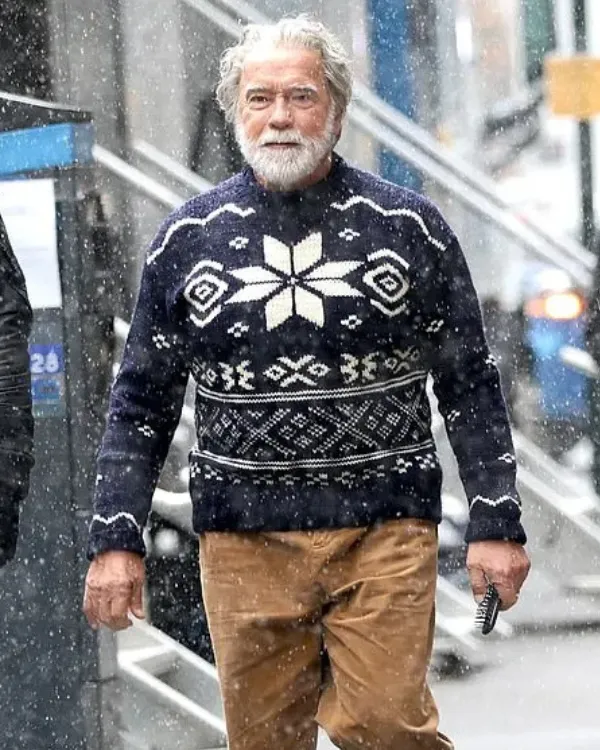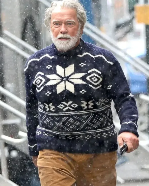 The Bag-Carrying Man The well-known holiday song and Arnold Schwarzenegger’s recognizable style served as inspiration for this chic and cozy item of apparel. During the colder months, this sweater is ideal for staying warm and looking fantastic. Fans of Arnold Schwarzenegger and anyone looking for a warm, stylish sweater are drawn to it because of its vibrant blue hue and timeless style. This The Man With The Bag Arnold Schwarzenegger Blue Sweater gives your ensemble a stylish touch, whether you are lounging around the house or going out with friends.