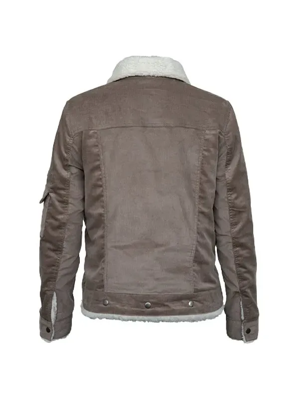 This jacket offers a unique combination of warmth and style with its cozy lining and trendy design. The brown corduroy exterior adds a casual flair. A practical piece for chilly days that still looks great.