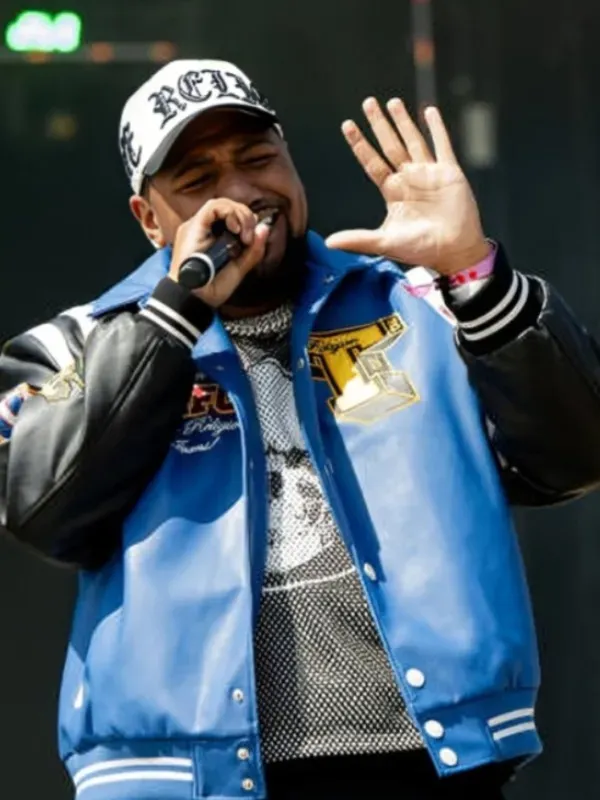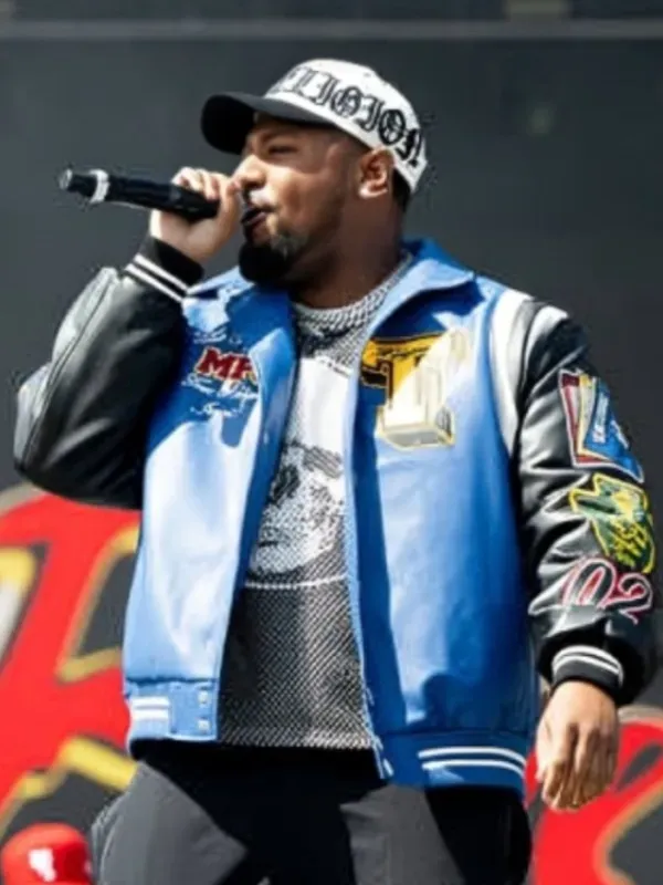 The Rolling Loud Festival Rapper Derrick Milano Blue and Black Jacket