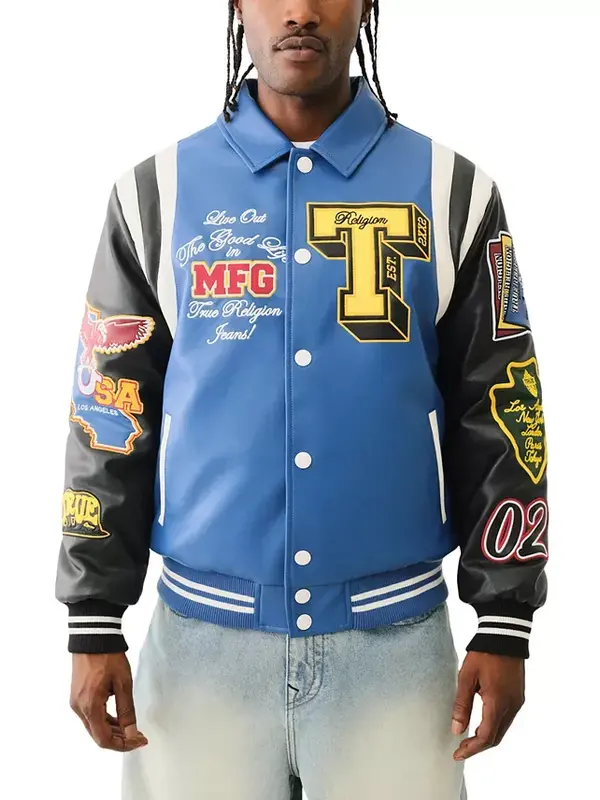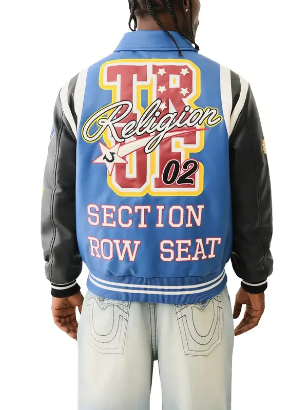 The mix of real and faux leather gives it a premium feel, and the color combination is eye-catching. The stitching is precise, and the overall structure of the jacket shows clear attention to detail. It’s built for both style and durability.