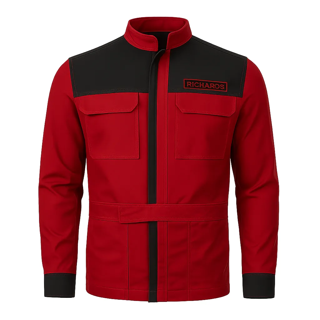 Constructed from premium cotton fabric, this The Running Red & Black Jacket offers a soft yet resilient texture suitable for everyday use. The viscose lining contributes a smooth, breathable interior for optimal comfort, while the front zipper closure and stand-up collar ensure a polished, structured fit. Full-length sleeves complete the design, balancing both style and practicality. Whether you are dressing casually or curating a themed outfit, this promises comfort, impact, and effortless versatility.