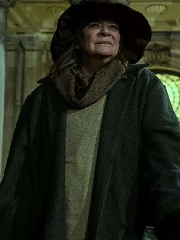 Inspired by her elegant and commanding presence in the critically acclaimed Netflix fantasy series The Sandman, the Clare Higgins The Sandman Green Trench Coat transports you to a world of mystery and classic style. This coat, worn by Clare in her portrayal of a strong and enigmatic character, epitomizes understated elegance and quiet strength.