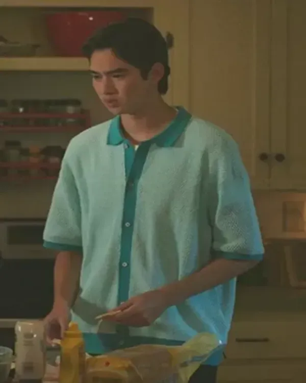In The Summer I Turned Pretty, Sean Kaufman depicts Steven, a character who brings warmth, humor, and charm to the show. Steven’s effortless yet sophisticated style often mirrors his carefree nature and youthful energy. He achieves the perfect blend of casual comfort and a hint of neatness with The Summer I Turned Pretty Sean Kaufman Button Down Polo Top. This choice reflects his relatable and approachable character while offering viewers a look that is both modern and timeless.