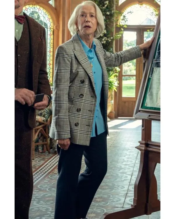 Elizabeth The Thursday Murder Club 2025 Helen Mirren Checkered Blazer