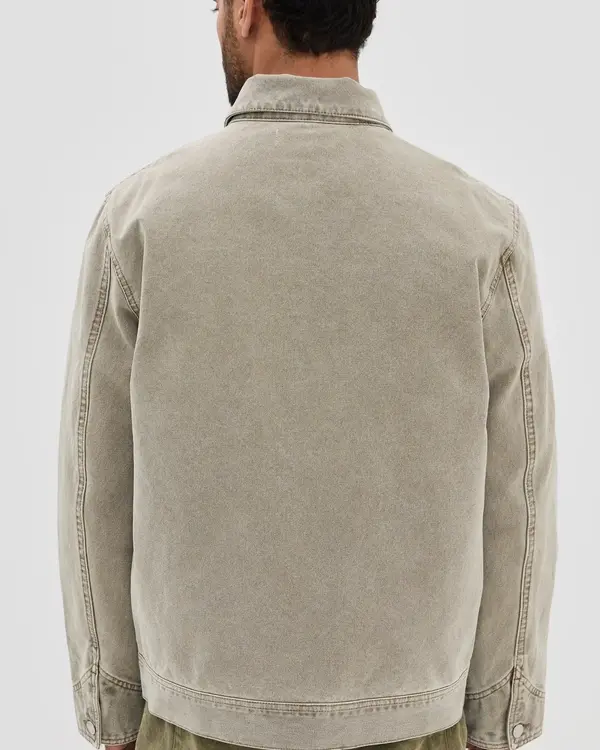 The jacket feels well-constructed with a clean, minimalist design. The stitching appears solid, and the gray shade provides a modern touch. A sturdy piece of clothing that stands out in both form and function.